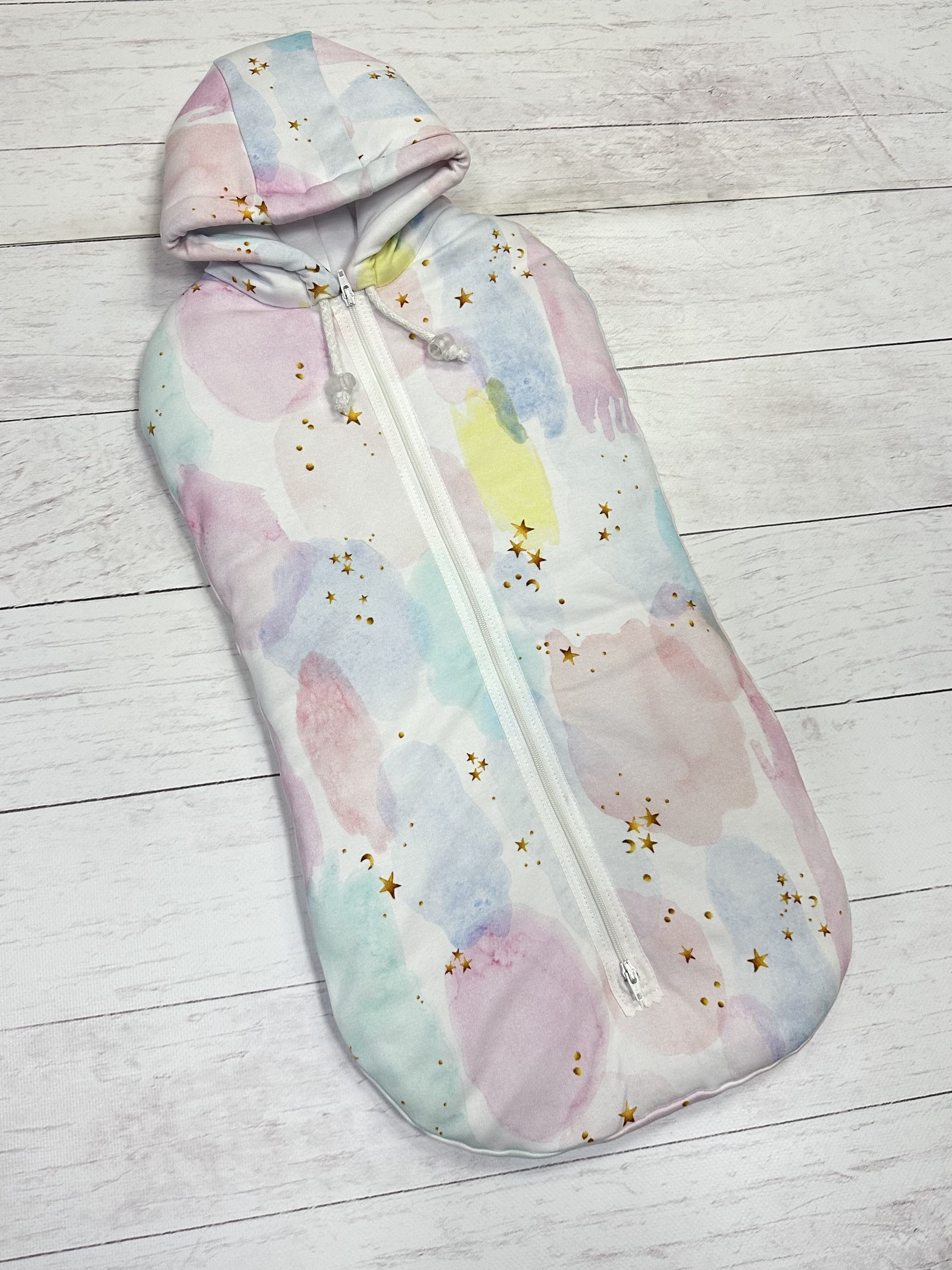 Замеры кокона - длина с капюшоном 68 см, длина от плеча 53 см.