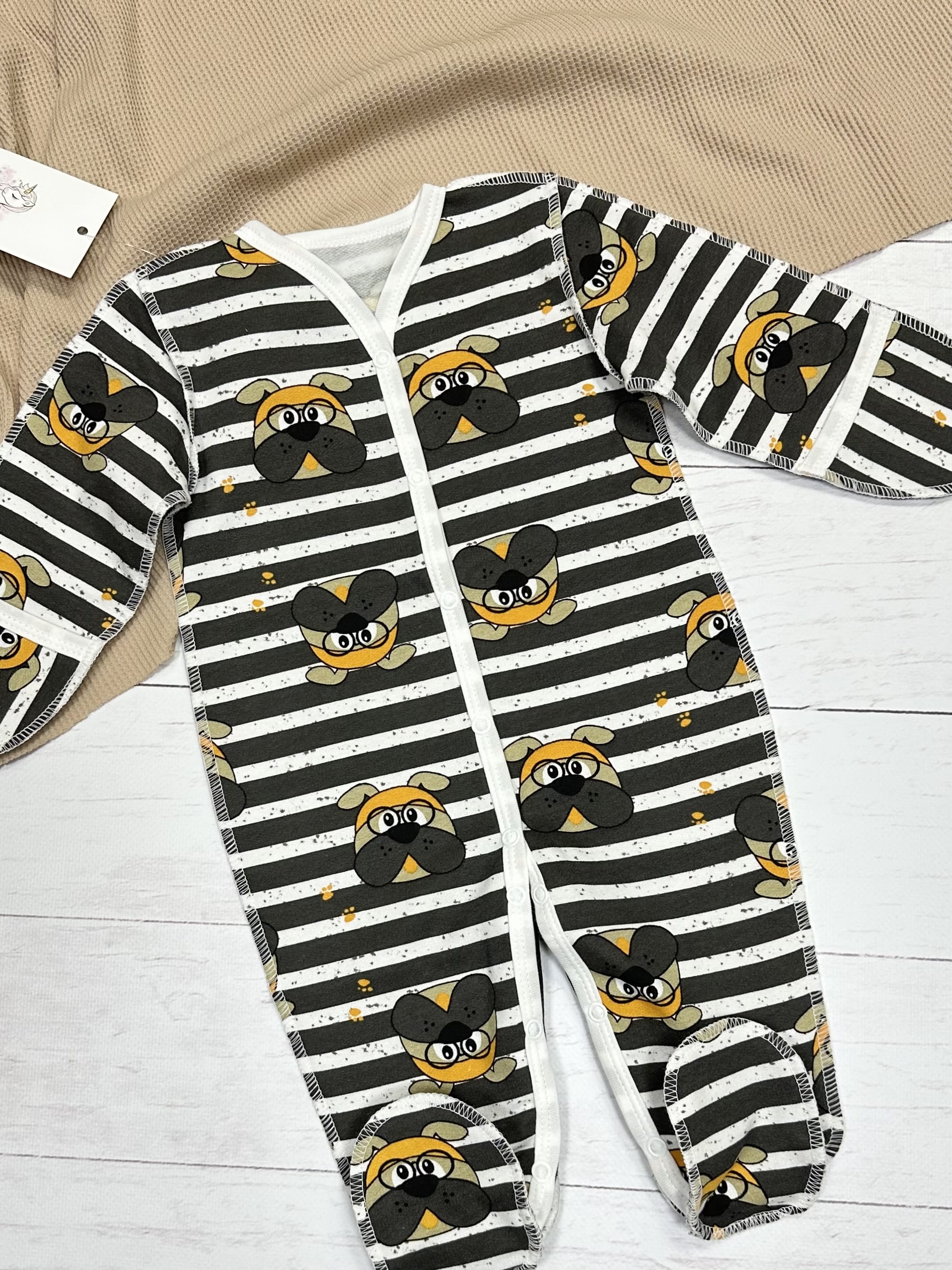 - слип с шапкой (звездочки на белом) (размер 62) - (интерлок, 100% хлопок).