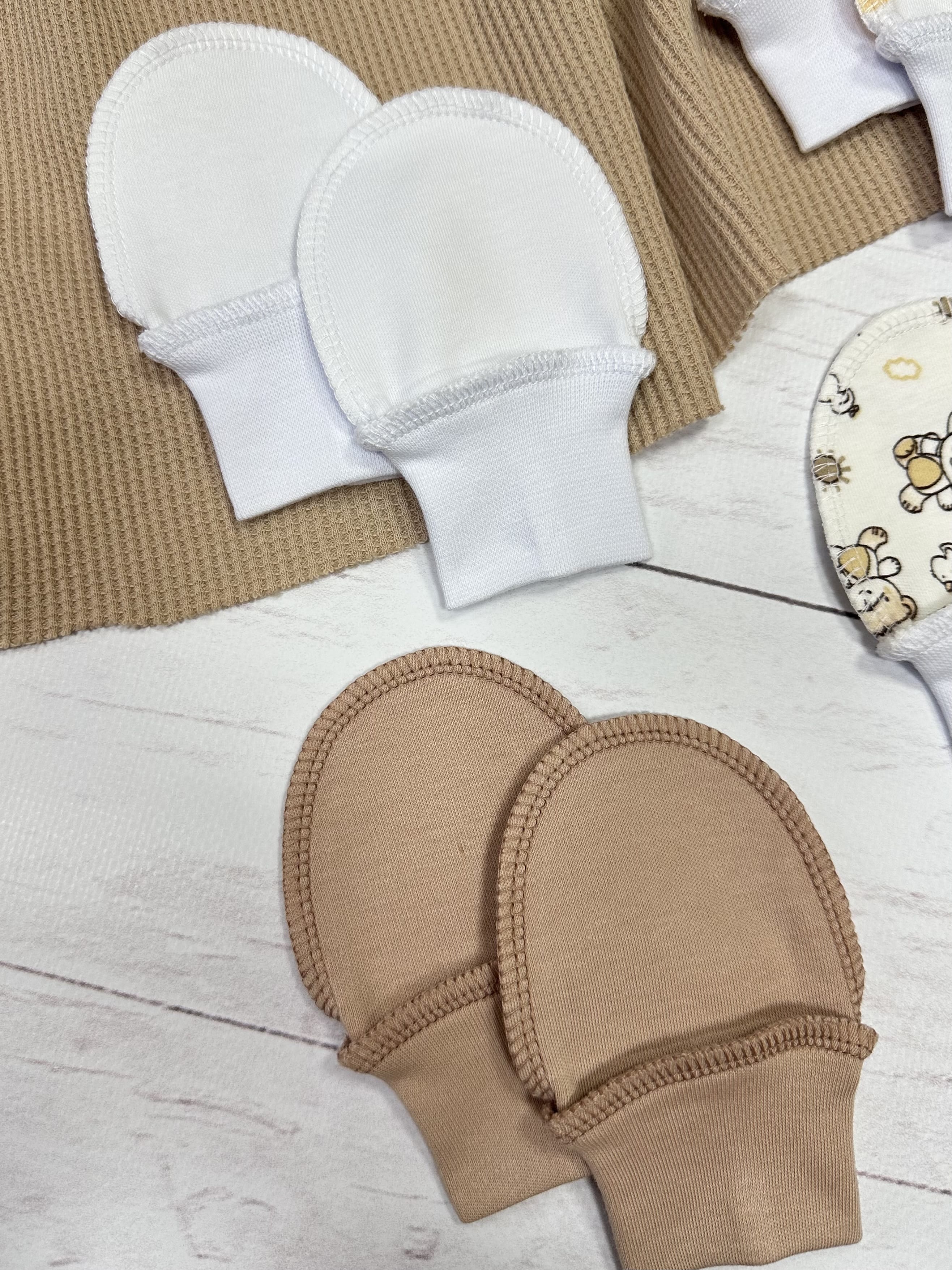 Антицарапки для новорожденных - незаменимая вещь при уходе за ребенком с первых дней жизни до 2-3-х месяцев, так как малыш не контролирует еще движения и может себя поцарапать.