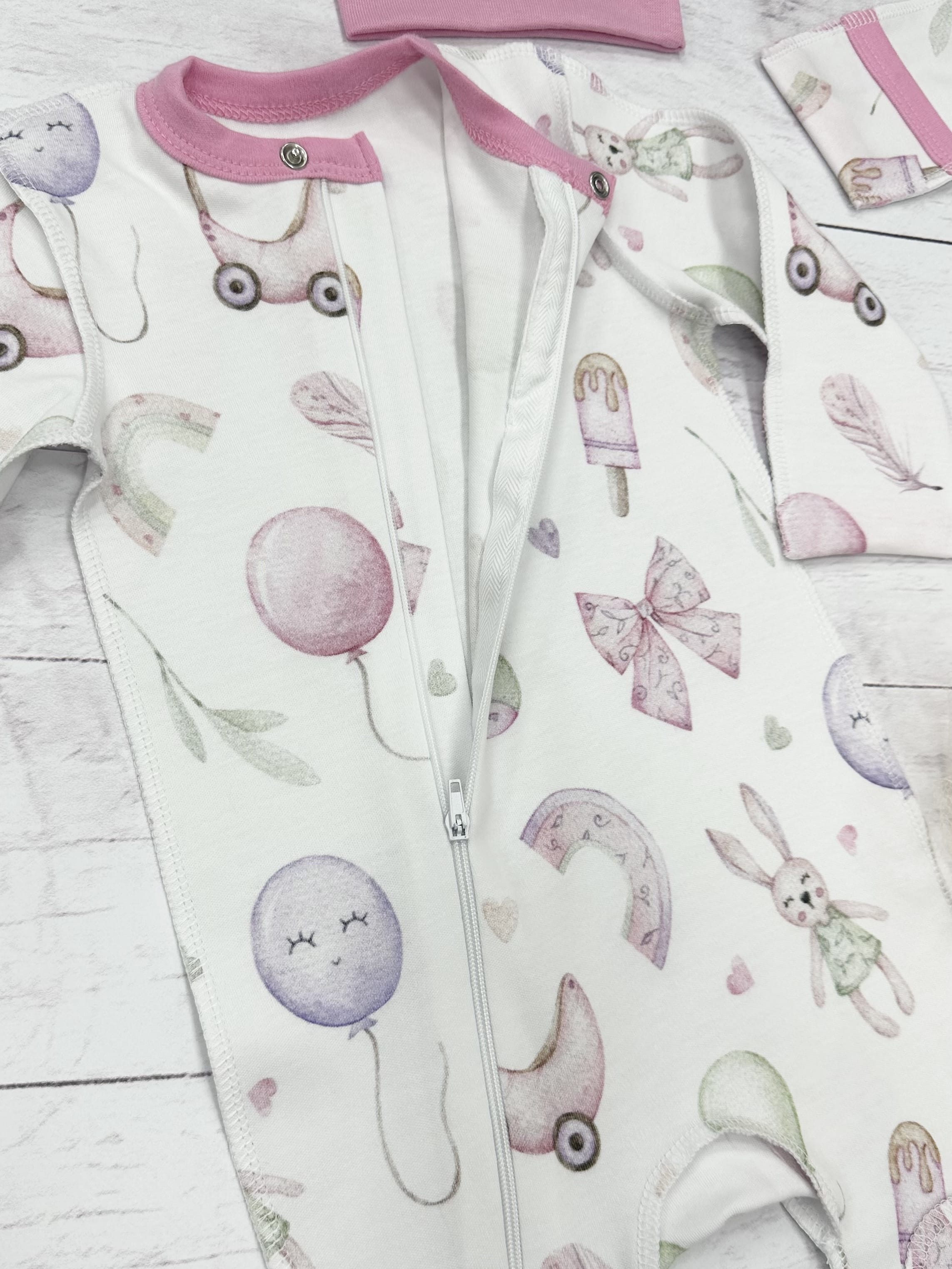 Слип с застежкой на молнии - для быстрого надевания, имеется защитная планка от соприкасания с кожей  малыша, на рукавах вшиты антицарапки.