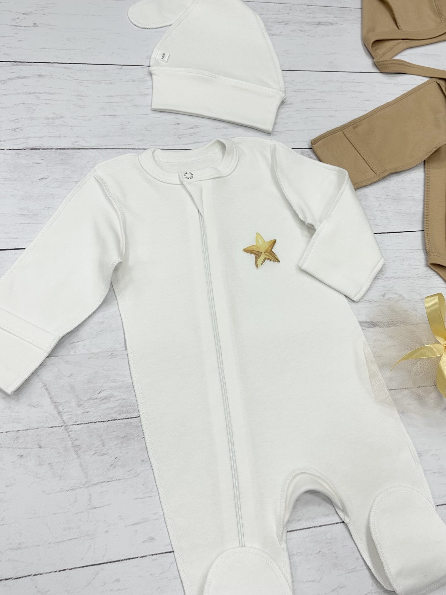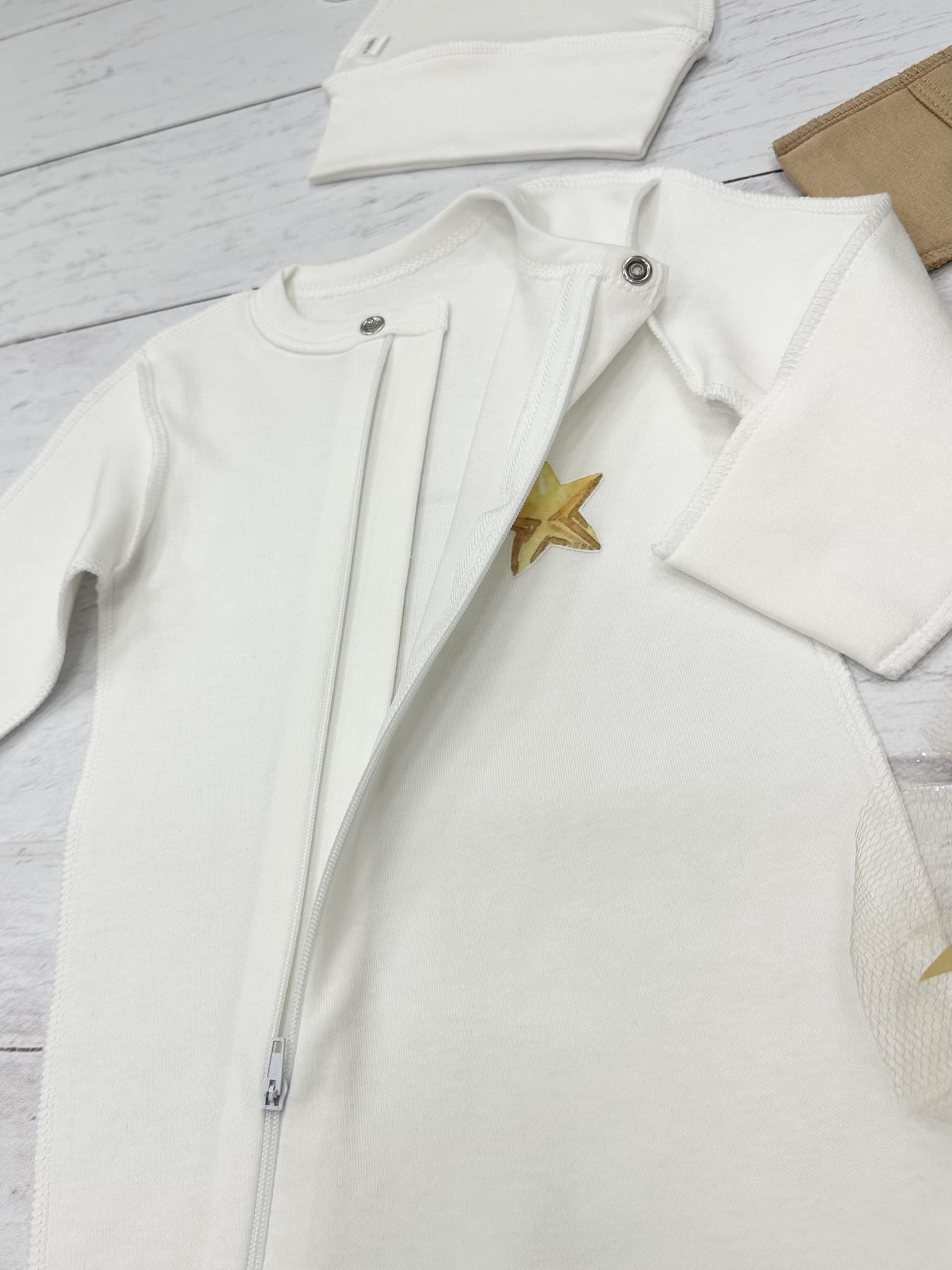 Наряд идеально подойдет для выписки из роддома, для прогулок или в качестве подарка малышу.