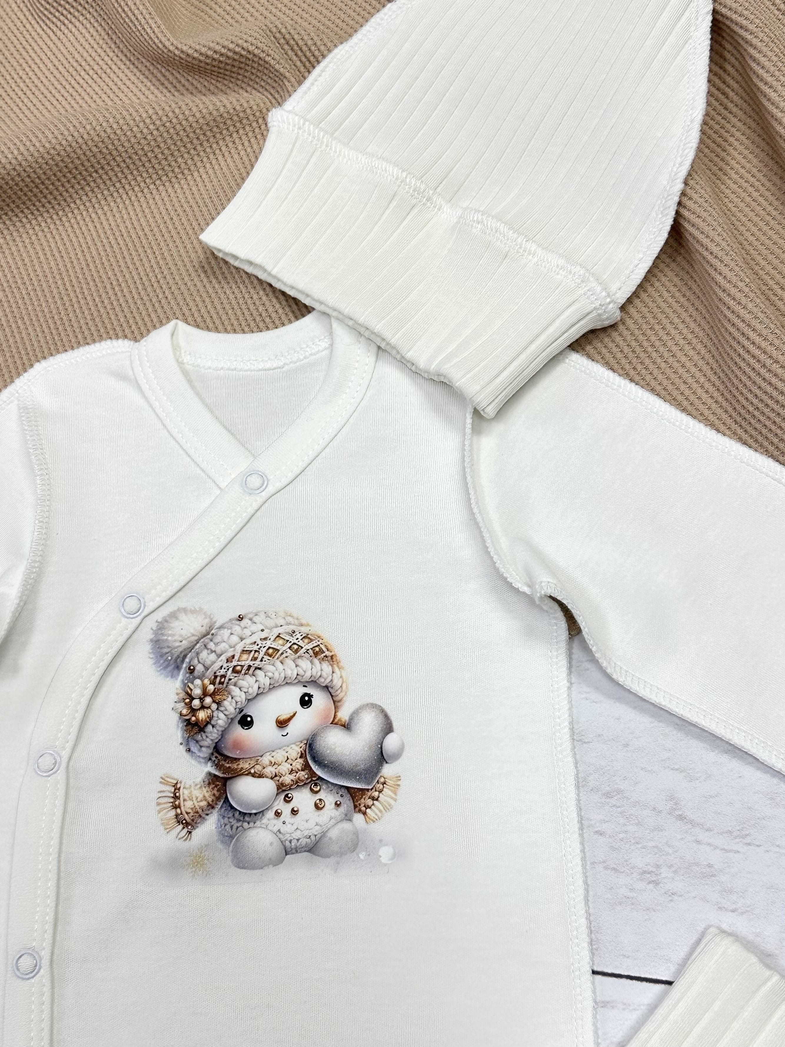 Комплект для новорожденного состоит из 3-х предметов - бодик, ползунки, шапка. Это базовая одежда малышей.