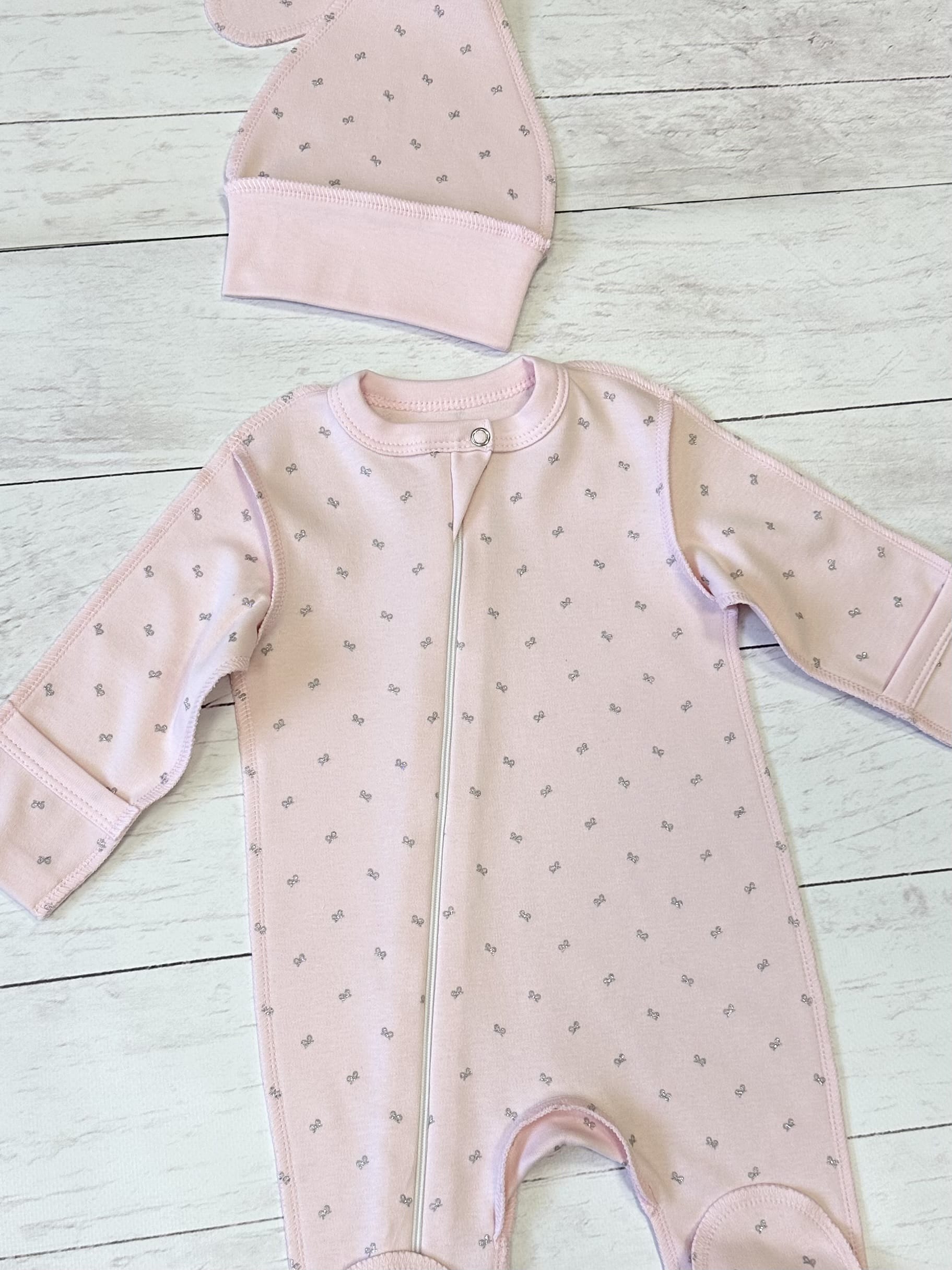 Слип с шапкой отлично подойдет на выписку из роддома.