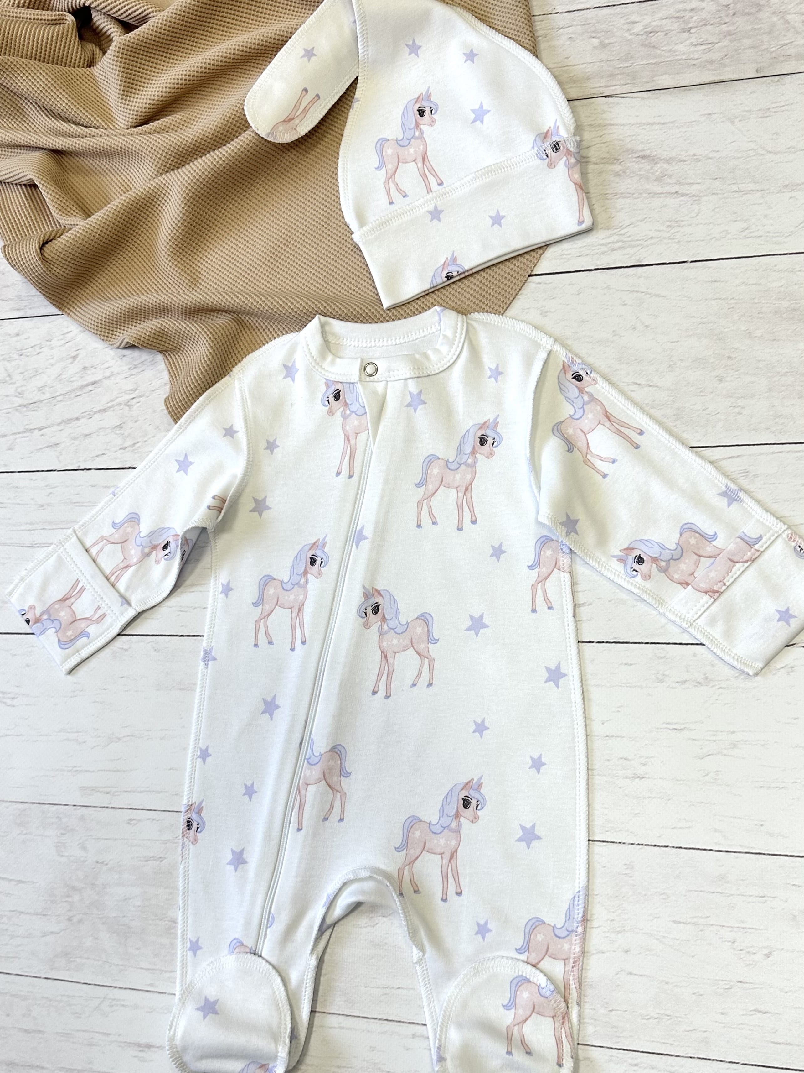 Слип с шапкой отлично подойдет на выписку из роддома.
