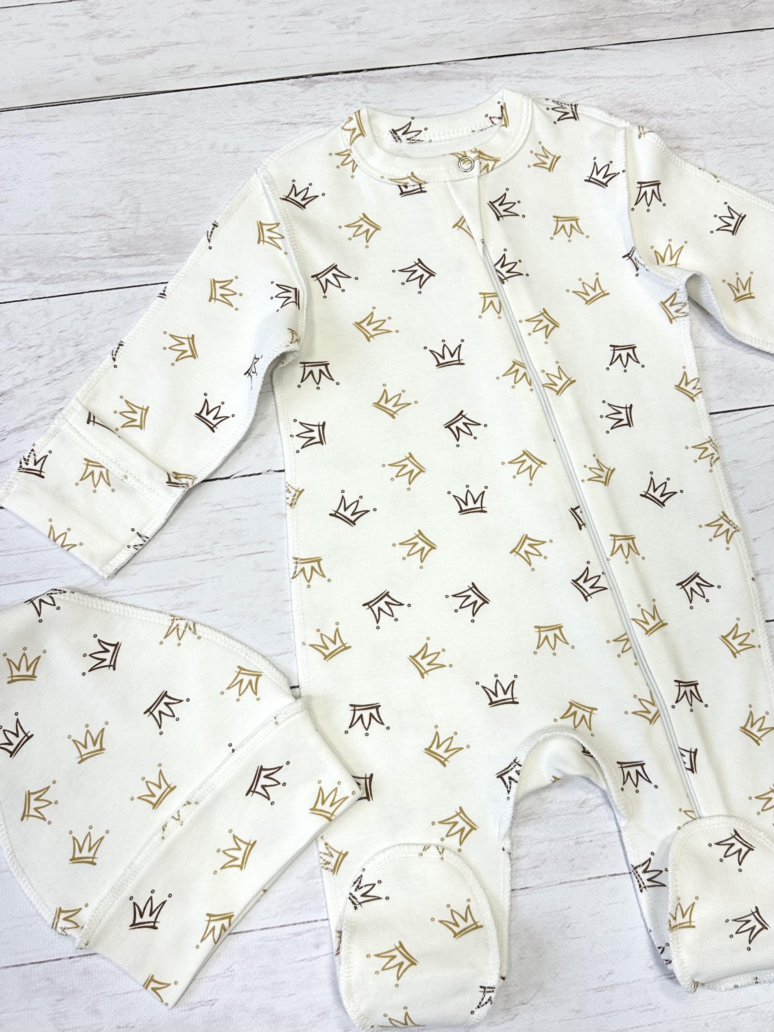 Слип с шапкой отлично подойдет на выписку из роддома.