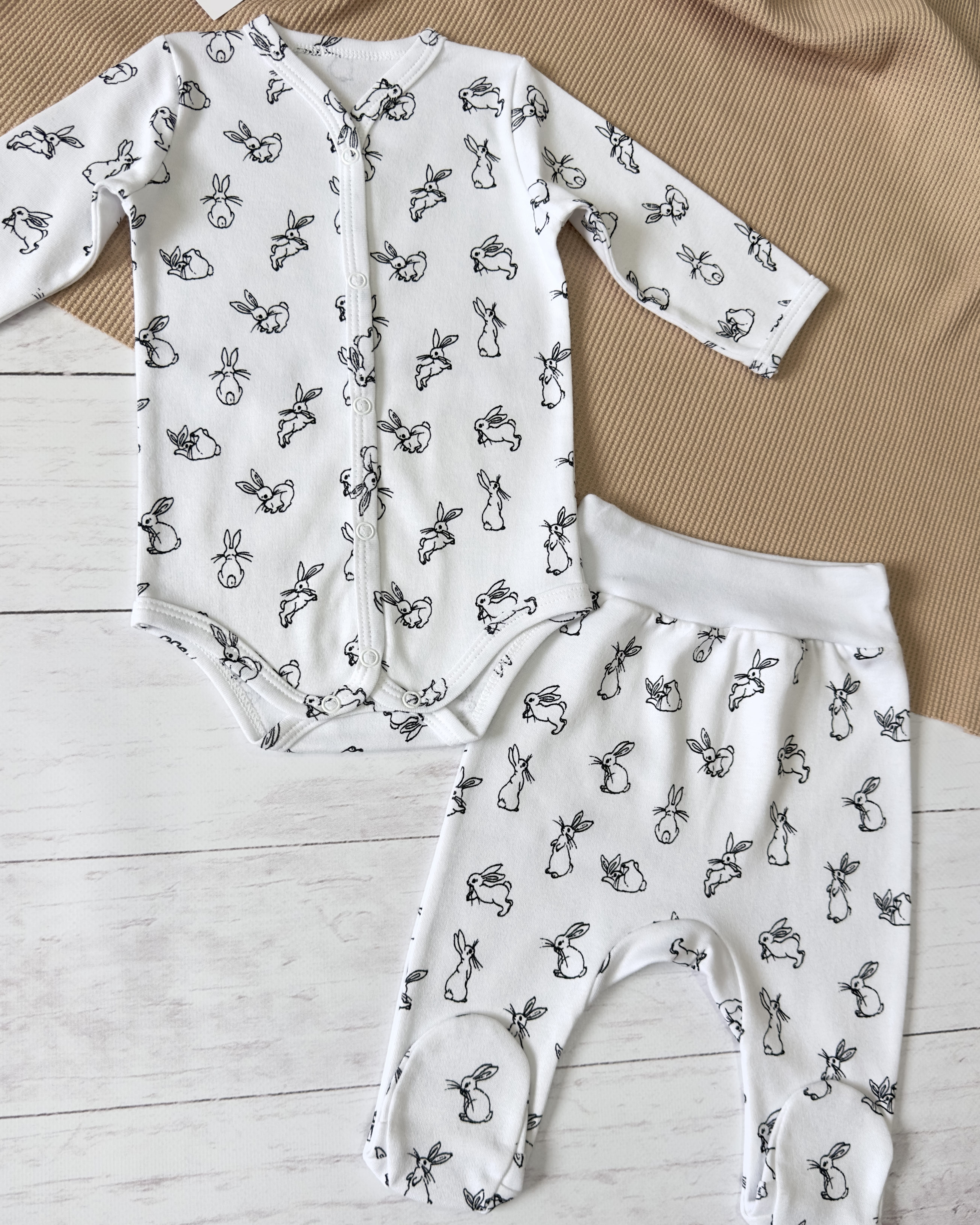 Комплект для малыша состоит из полукомбинезона короткого (боди) и ползунков.