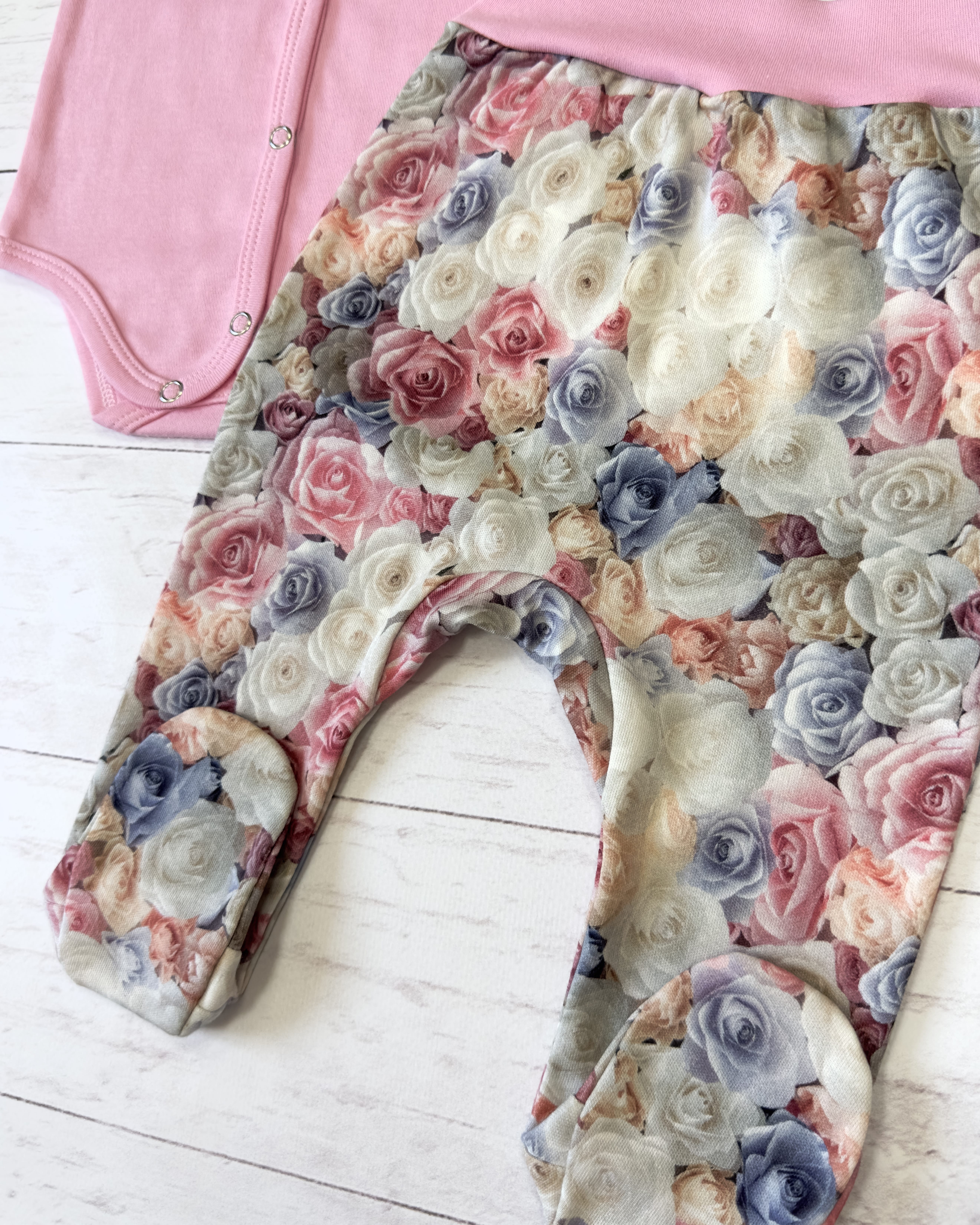 Выполнен из мягкого трикотажного полотна интерлок пенье (100% хлопок). Полотно немного тянется, поэтому обеспечивает максимальный комфорт малышу.
