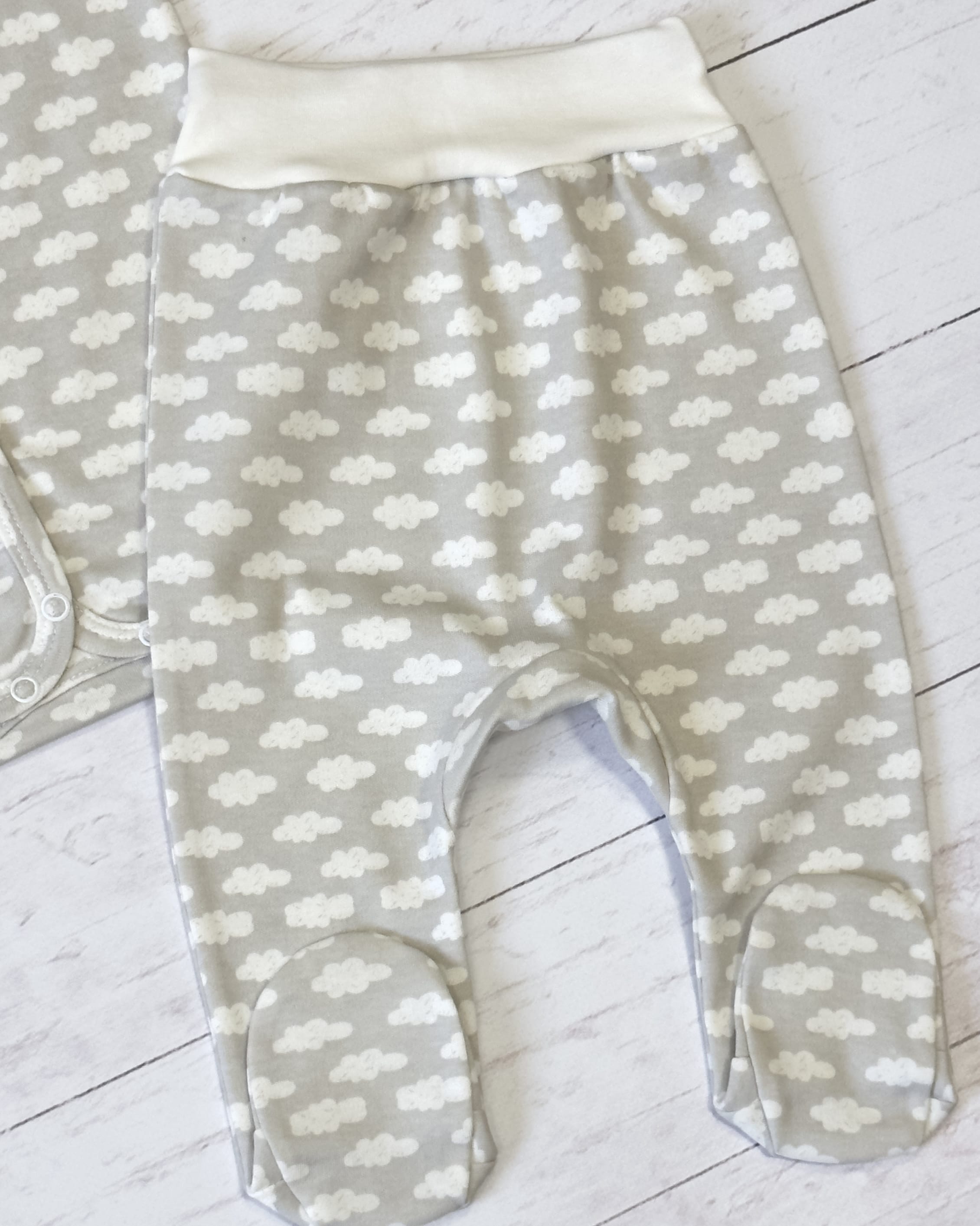Выполнен из мягкого трикотажного полотна интерлок пенье (100% хлопок). Полотно немного тянется, поэтому обеспечивает максимальный комфорт малышу.