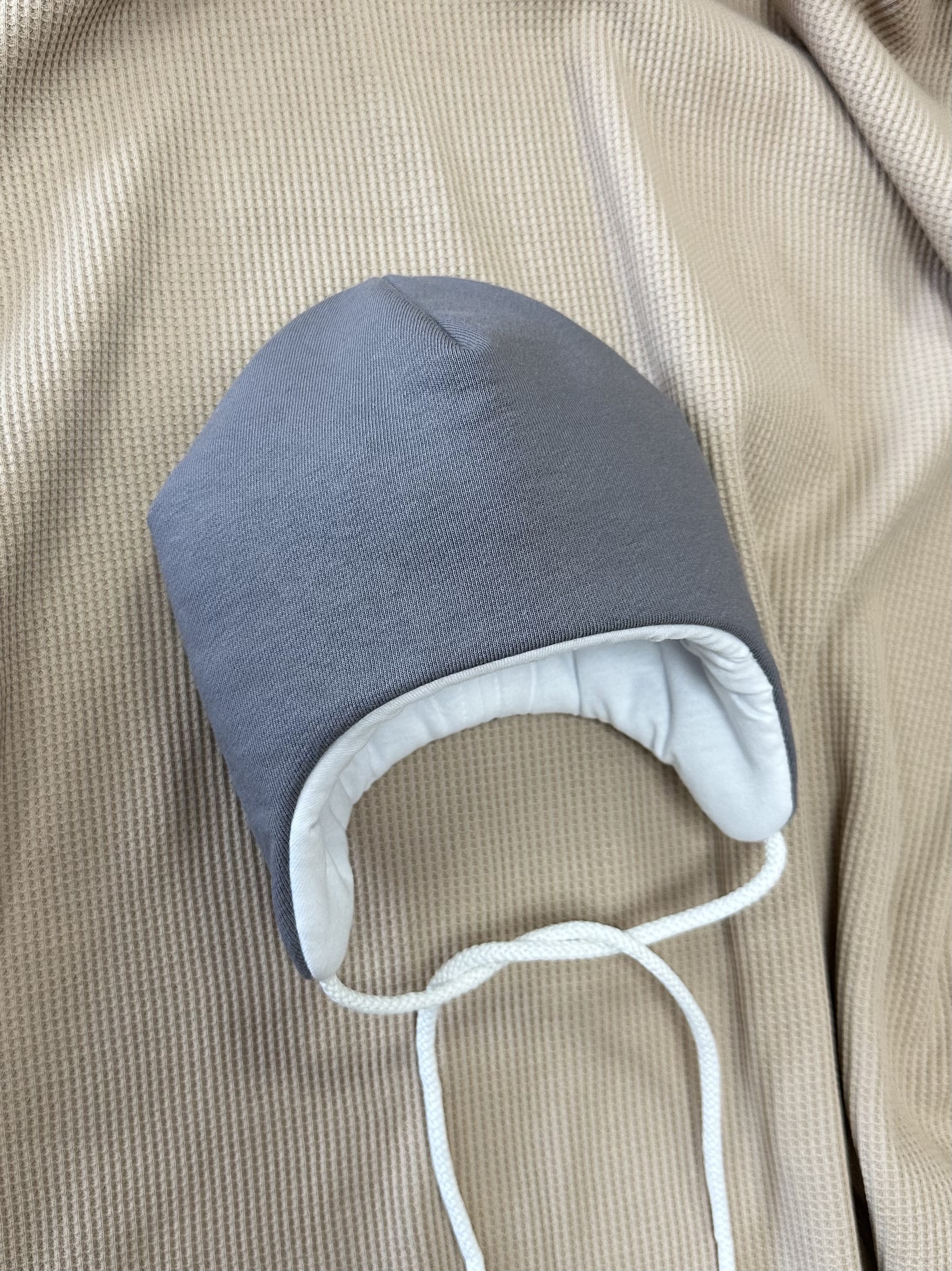 Трехслойная утепленная шапка на завязках.
