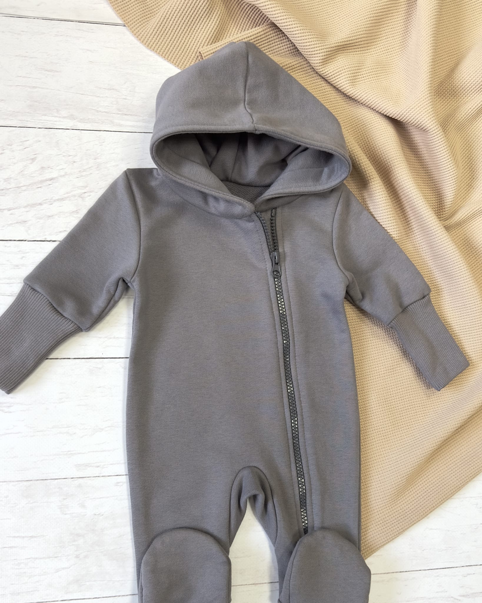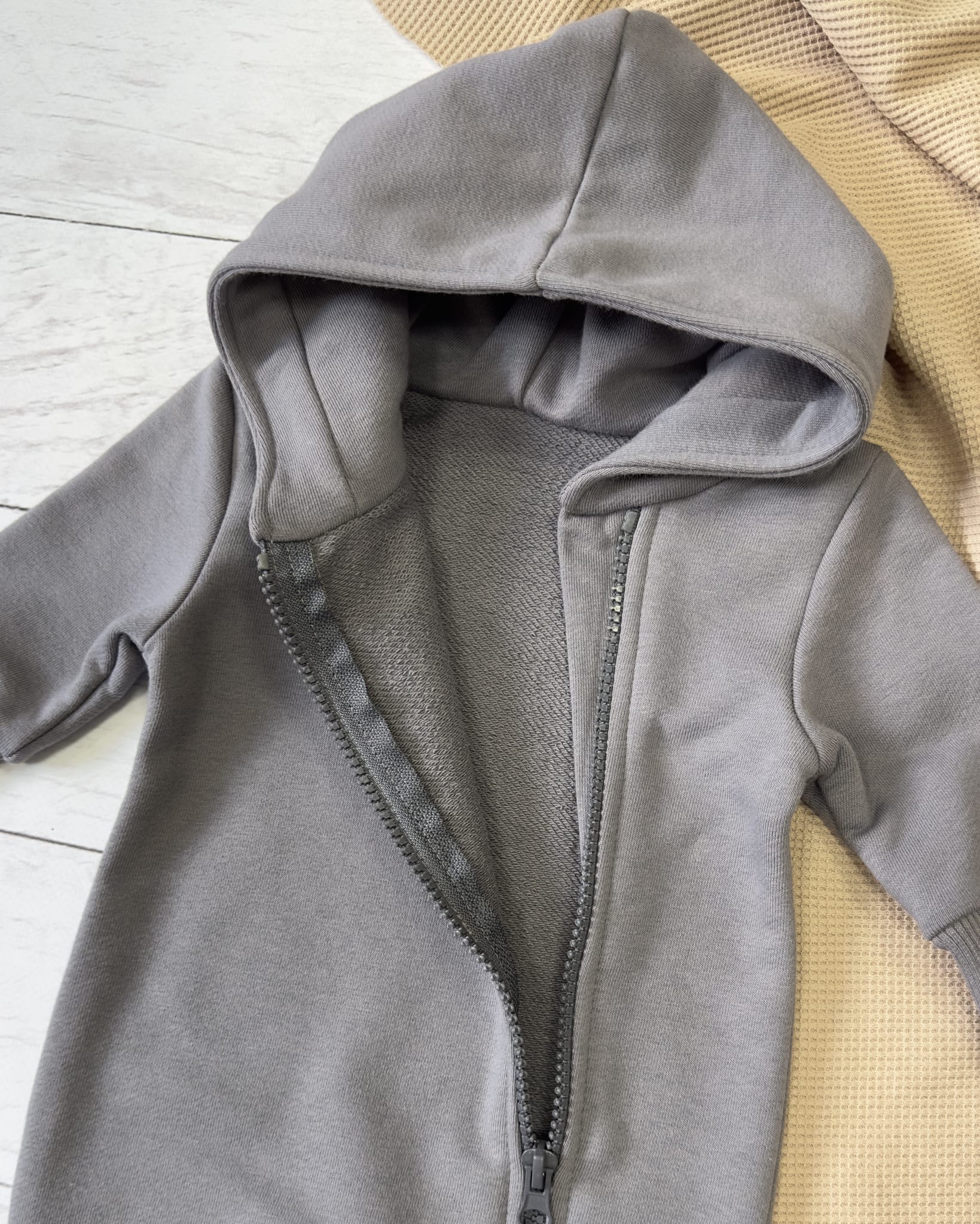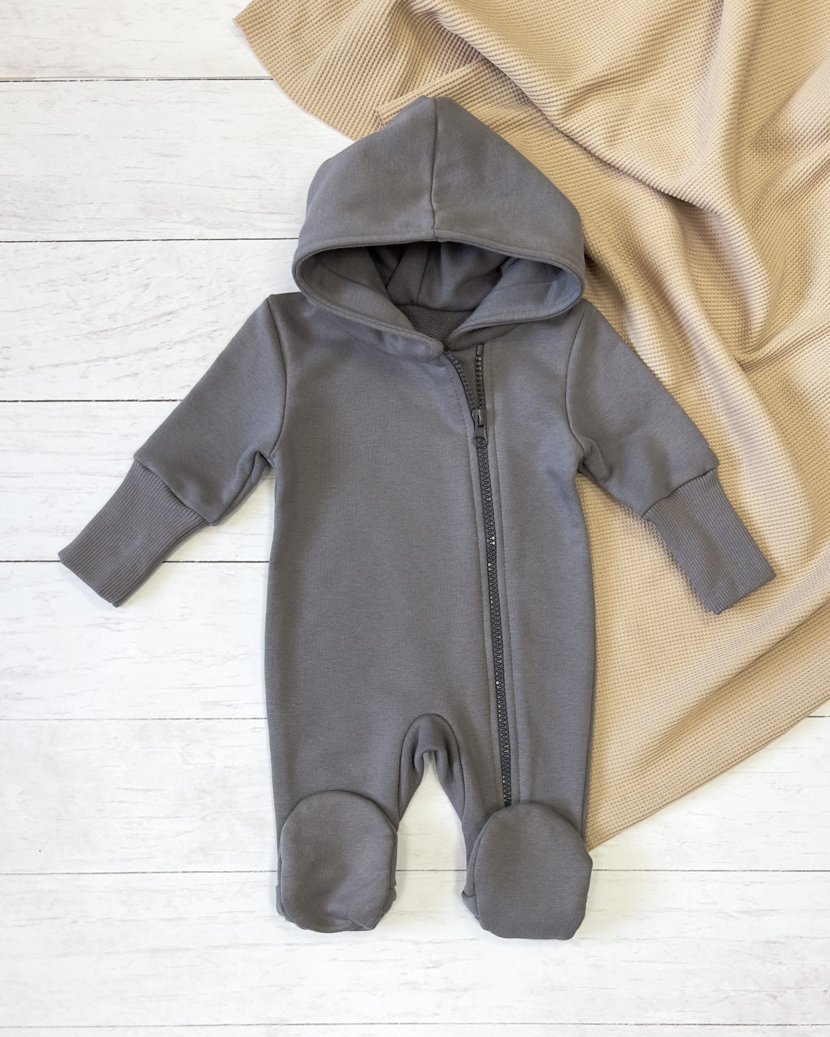 Комбинезон с капюшоном выполнен из качественного футера 3-х нитки петли, что обеспечивает тепло и комфорт малышу.