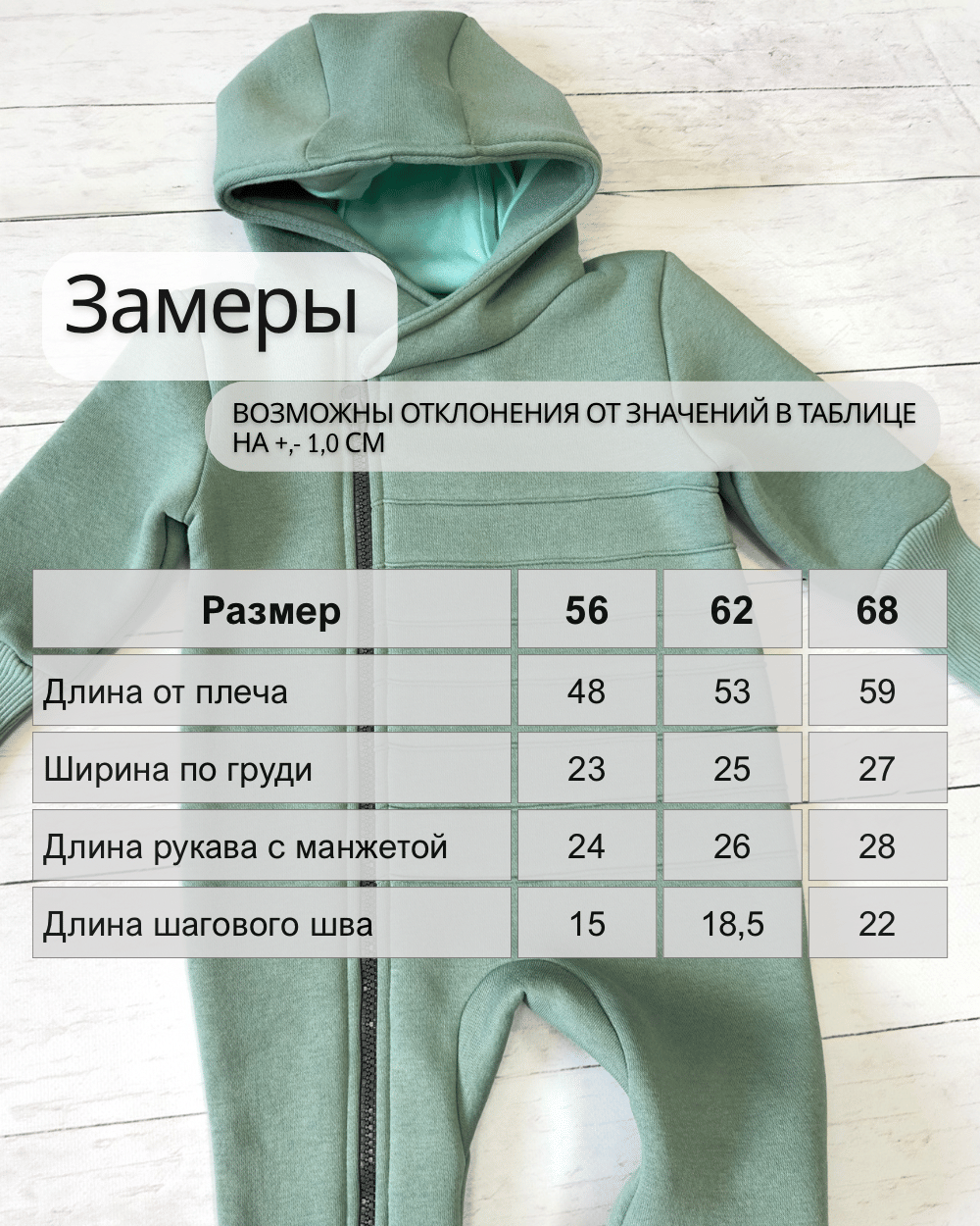 Универсальная модель комбинезона с закрытыми ножками с капюшоном. Сшит из футера 3-х нитки с начесом. Молния расположена максимально удобно, чтобы не защемить шею и подбородок малыша.