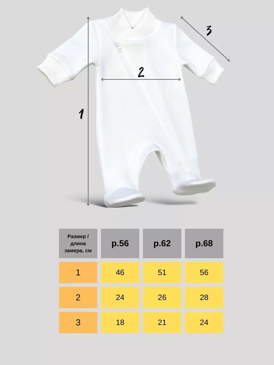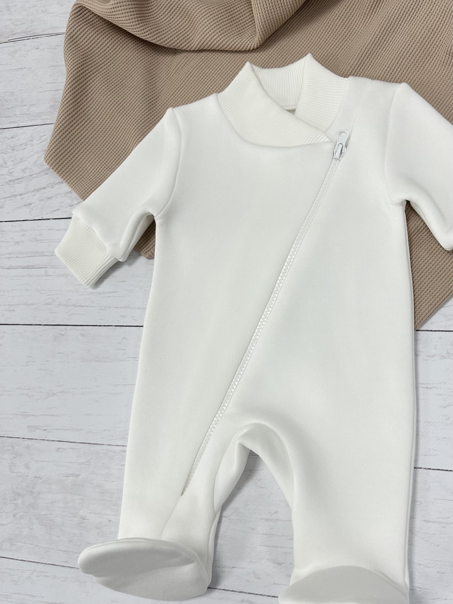 Универсальная модель комбинезона с закрытыми ножками без капюшона. Сшит из футера 3-х нитки с начесом. Молния расположена максимально удобно, чтобы не защемить шею и подбородок малыша.
