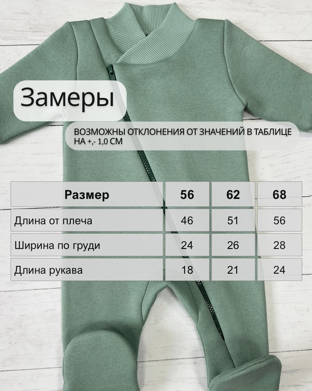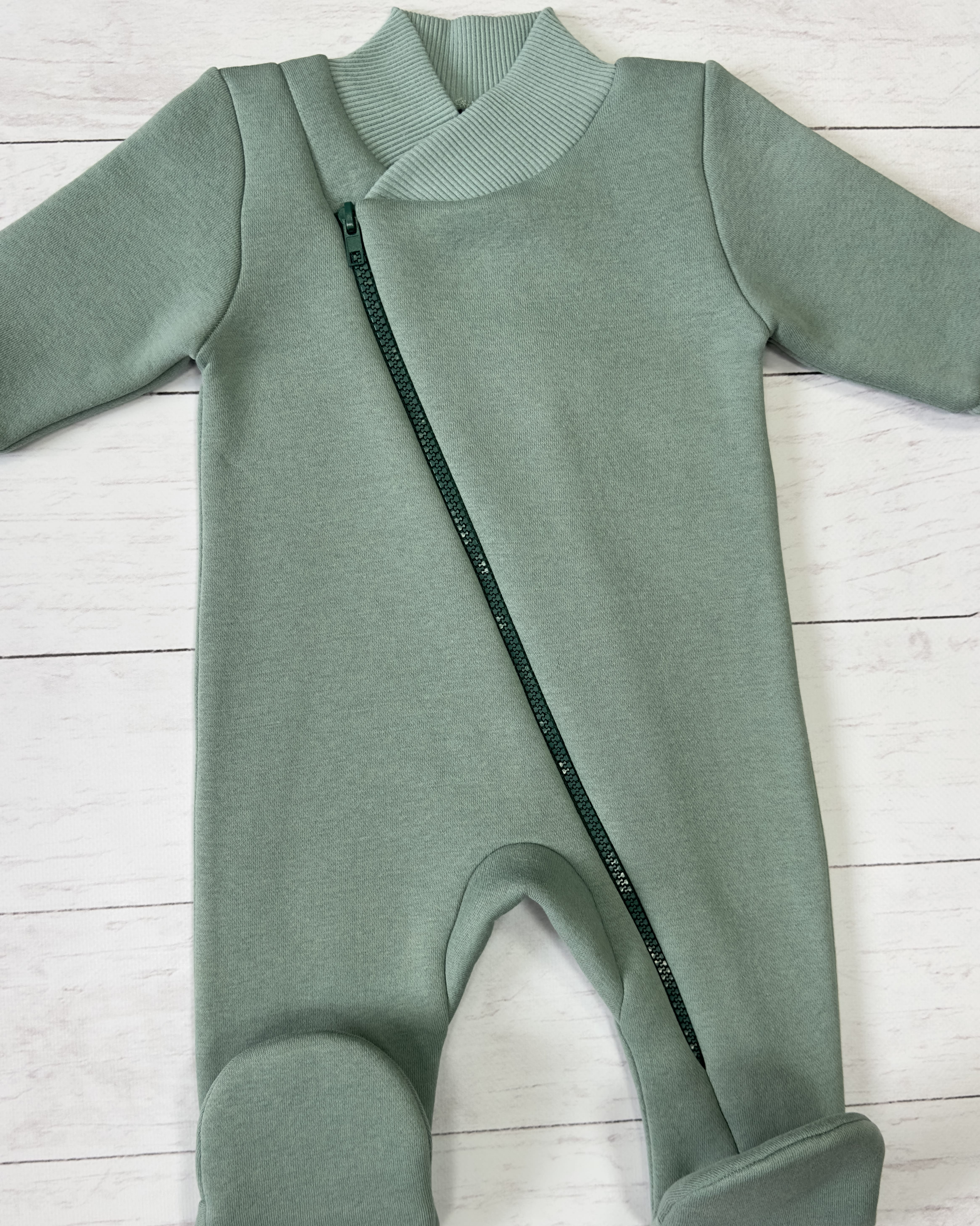 Универсальная модель комбинезона с закрытыми ножками без капюшона. Сшит из футера 3-х нитки с начесом. Молния расположена максимально удобно, чтобы не защемить шею и подбородок малыша.