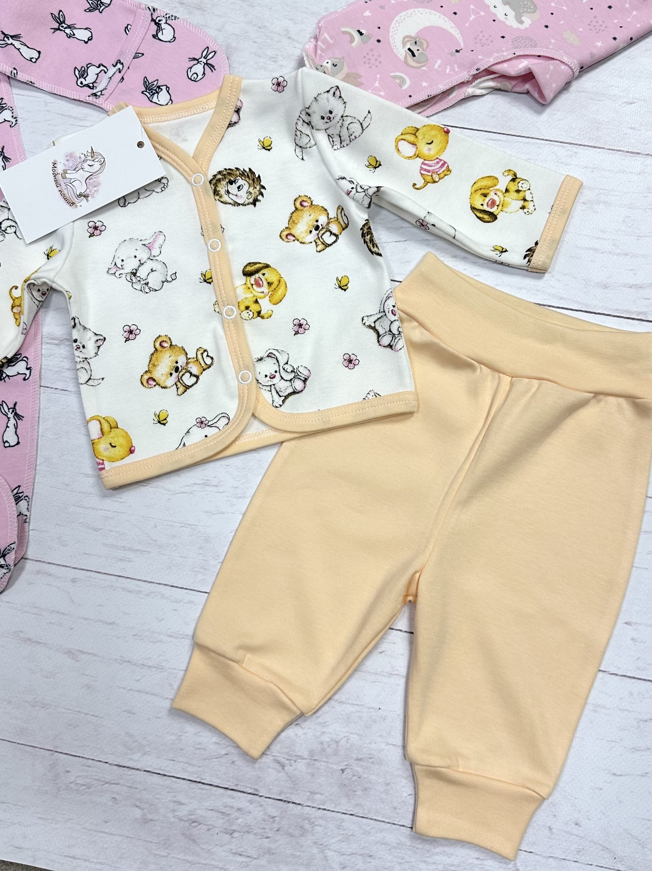 2. Комплект 2 пр. (кофточка, штанишки), цвет персиковый с рисунком - интерлок, 100% хлопок.