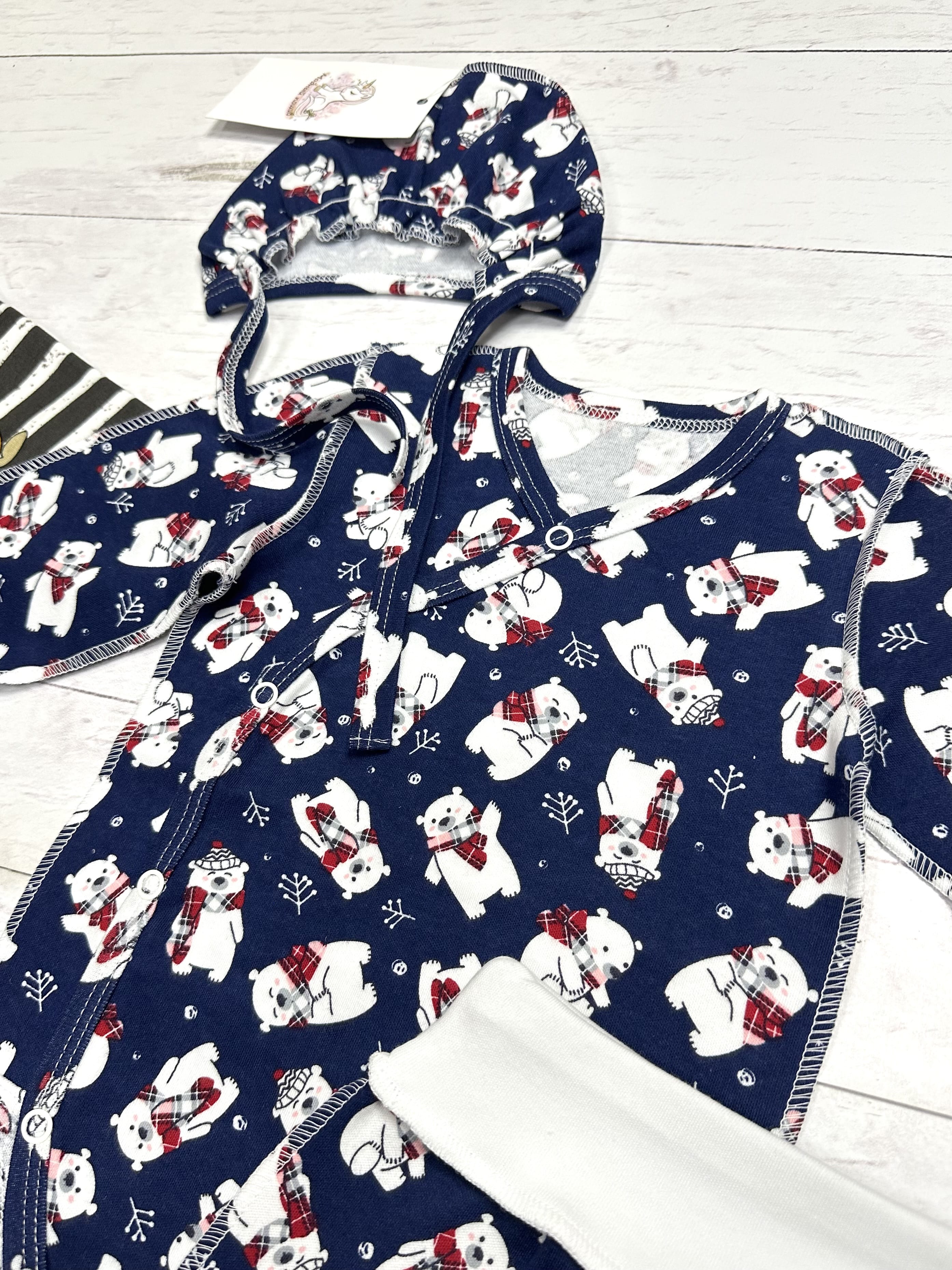 1. Комплект 3 пр. (боди, ползунки, чепчик), цвет синий с мишками - интерлок, 100% хлопок.