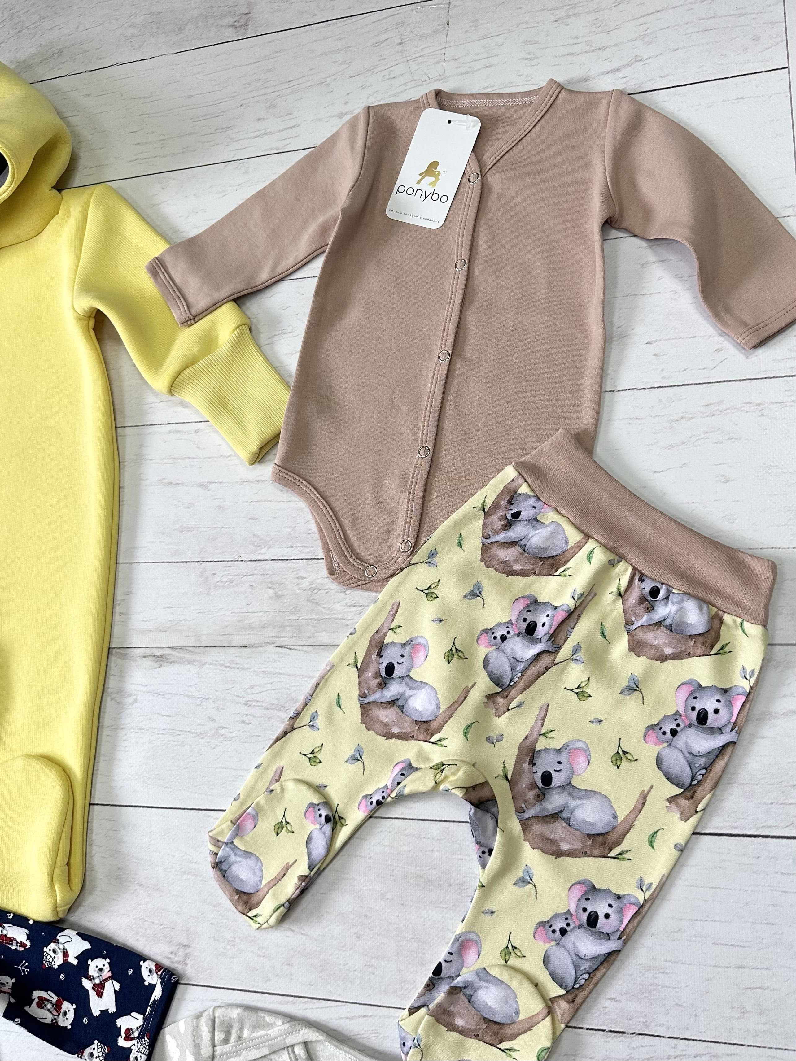 2. Комплект 2 пр. (боди, ползунки), цвет бежевый с коалами - интерлок, 100% хлопок.