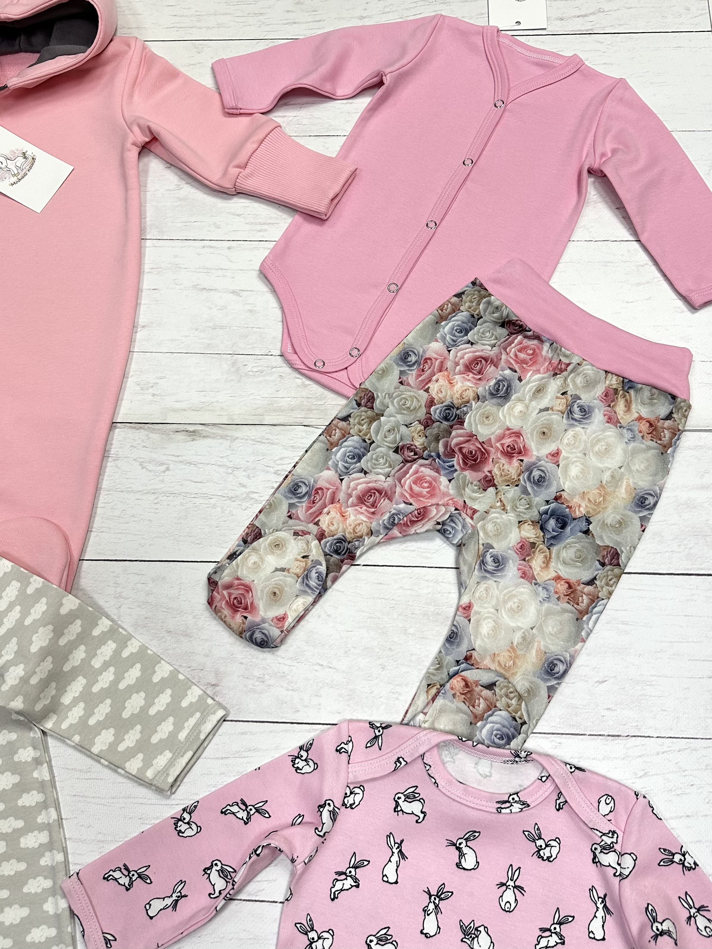 3. Боди, цвет розовый с зайчиками - интерлок, 100% хлопок.