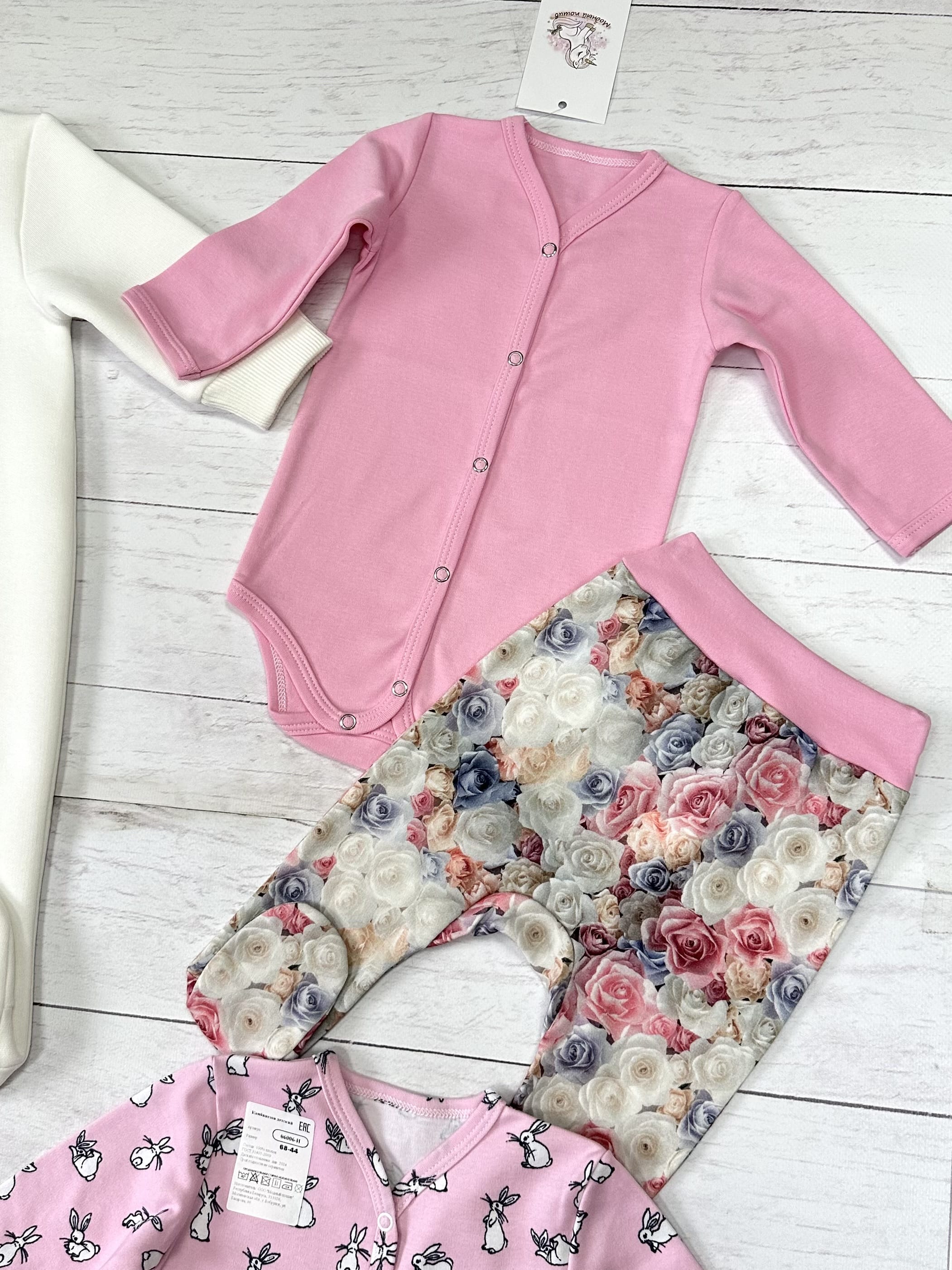 2. Комплект 2 пр. (боди, ползунки), цвет розовый с розами - интерлок, 100% хлопок.