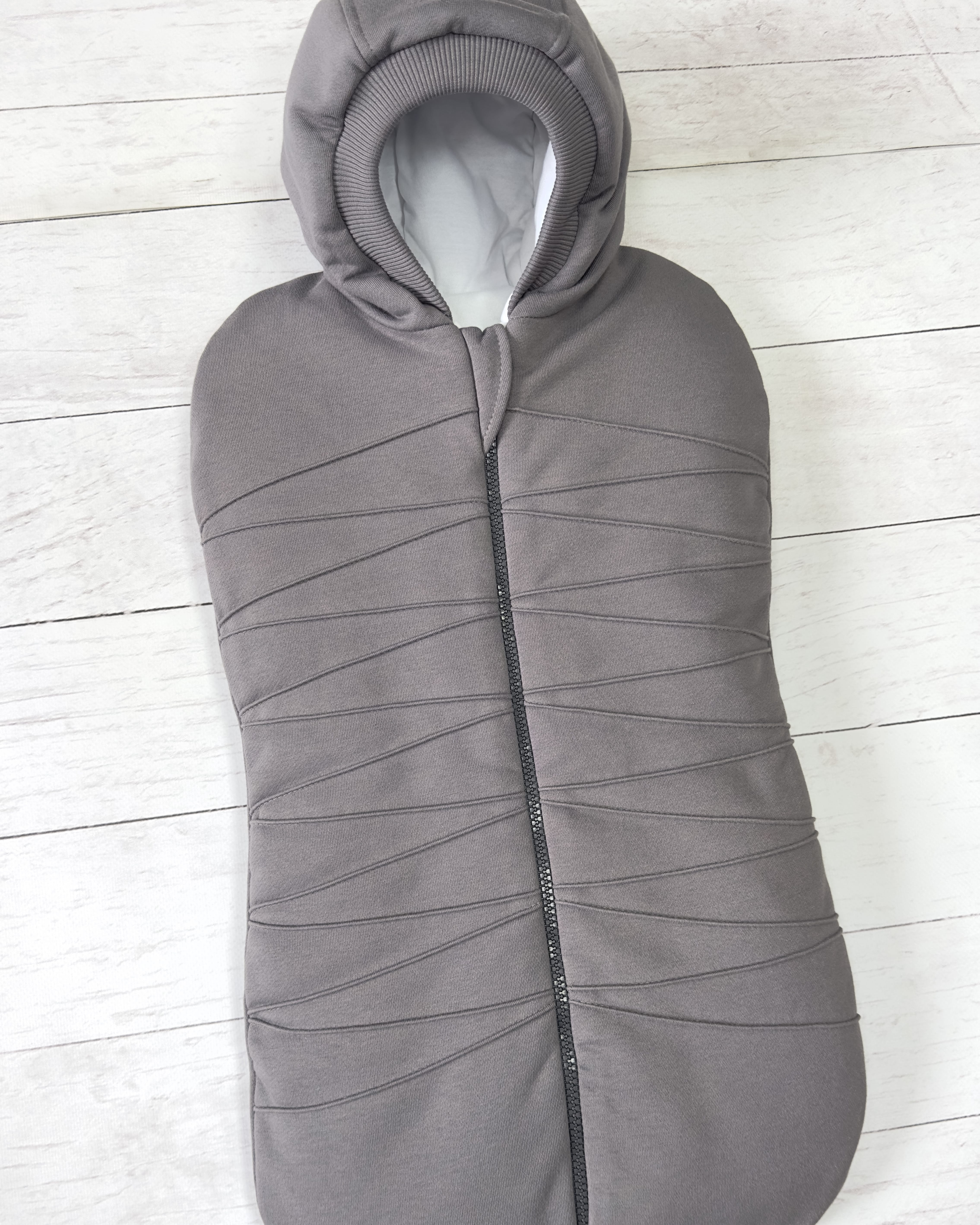 Замеры кокона - длина с капюшоном 72 см, длина от плеча 57 см, ширина (самое узкое место) 30 см.