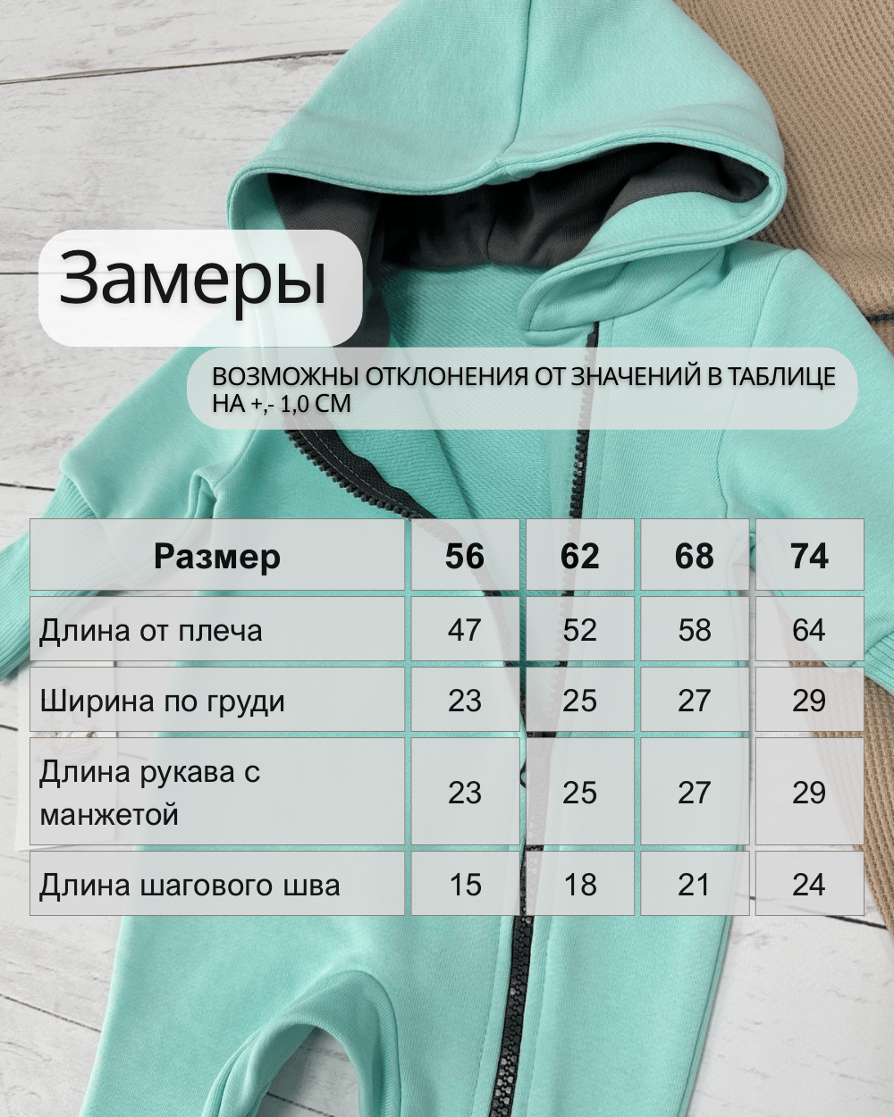 Комбинезон с капюшоном выполнен из качественного футера 3-х нитки петли, что обеспечивает тепло и комфорт малышу.